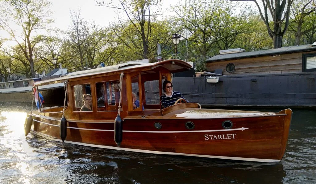 A true gem of maritime history. The Starlet is one of only two original wooden saloon launches still cruising the canals of Amsterdam. Built by the iconic J. Langenberg shipyard in 1921 and lovingly restored over two years, this boat features a new hull, a silent electric engine, and every detail polished to perfection. Ideal for romantic escapes, VIP cruises, or small-group celebrations.